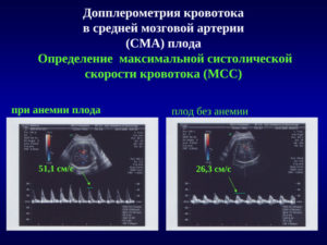 Нарушение кровотока — это повышение значений ИР, ПИ и СДО. Критическим (говорящим о гибели плода) считается регистрация предельно низких значений вплоть до их полного исчезновения.